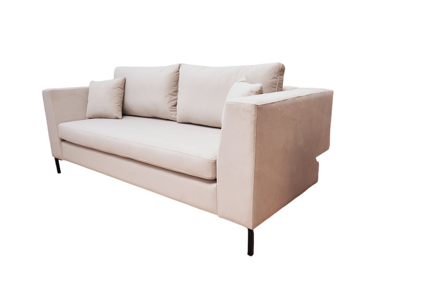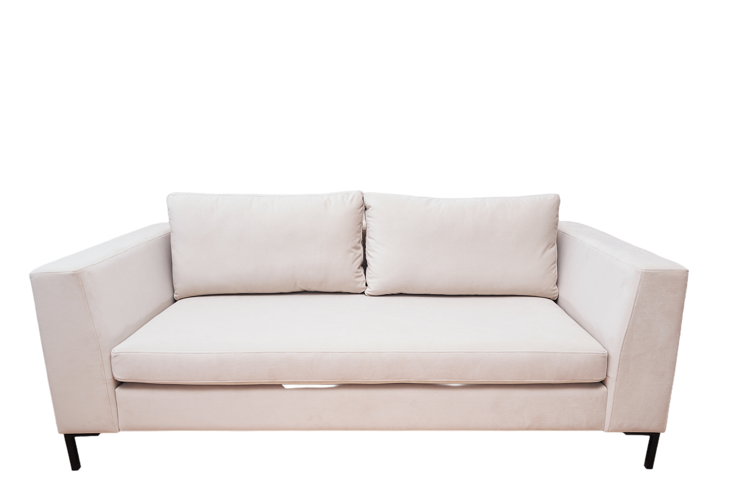 Модель «Челси» в универсальном молочном оттенке подойдет для обстановки в стиле сканди, лофт или минимализм. Бархатистая поверхность с гладким коротким ворсом приятна на ощупь и не боится сухой чистки. Микровелюр устойчив к истиранию, не тускнеет при эксплуатации, не вызывает аллергических реакций. Сочетание белой обивки и металлических ножек с покрытием под бронзу дают дивану элегантность. Изделие легко освежить яркими акцентными подушками или контрастным окружением.