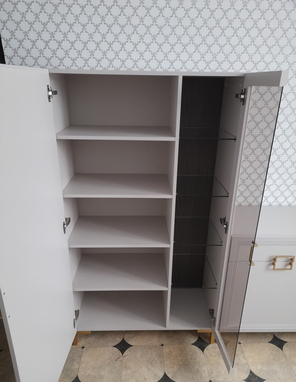 Цена на Шкаф Дольче со стеклянными полками (4 шт.) и полкой ЛДСП от производителя , оплата наличным или безналичным расчетом!