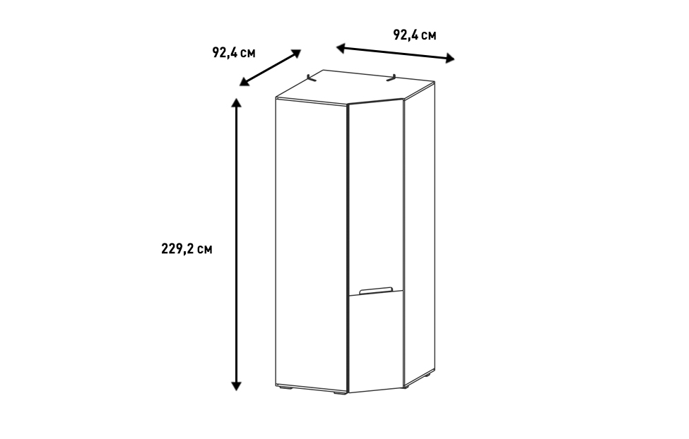 – описание: стиль современный, минимализм, назначение для одежды, размер 229.2x92.4x92.4 см, цвет швейцарский вяз, белый.