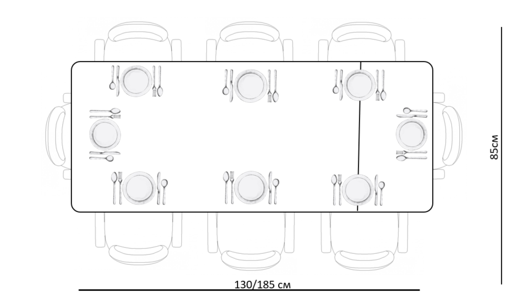 В сложенном же виде, с широкой стороны стола остаётся место даже для двух крупных кресел, благодаря расположению ножек. Раздвижной механизм обеспечивает комфорт при эксплуатации. Вмещает до четырех стульев с обеих сторон.