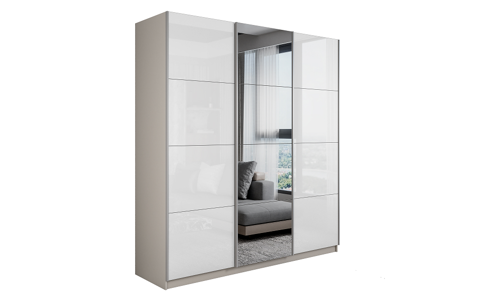 Цена на Шкаф-купе Lux 210х230х57 кашемир Белый глянец/Зеркало/Белый глянец от производителя , вы можете приобрести в кредит!