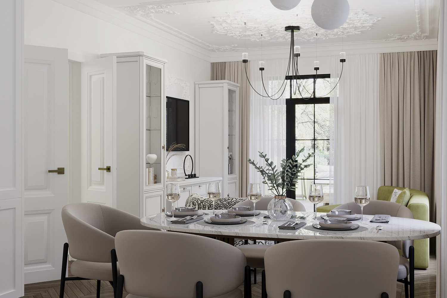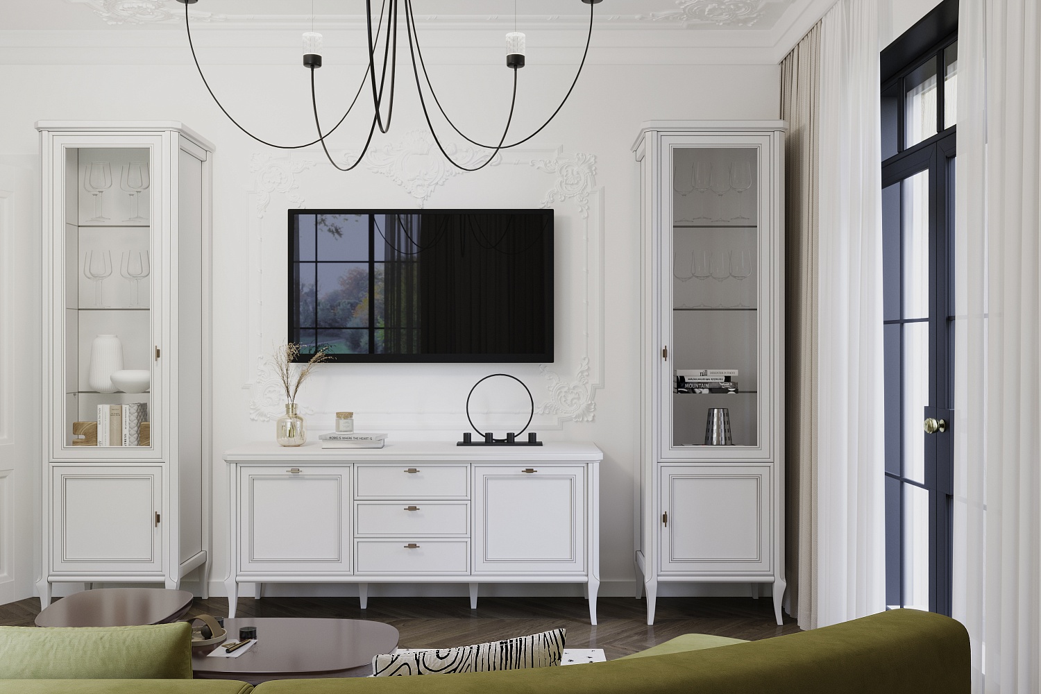 – описание: цвет бело-серый, стиль неоклассика, назначение для гостиной, размер 214.8x287x50.5 см.